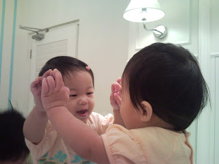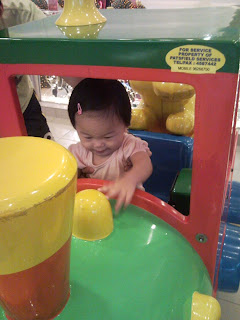 Mum's wrist swells again thats why these few days we kept bringing Gisele out so she can rest her hand. Today we brought Gisele to Great World City, ate at the hawker centre opposite cos i miss LAU WU carrot cake!! Dear is a little pissed cos got to queue for the carrot cake for quite long.. :S After our dinner, we went to Great World City to see there's any nice dress or Tees for Gisele. Too bad there isn't..
